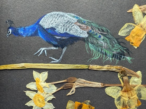 She is a falling star. Beautiful to witness, but often burning up and burning out for those around her. This subtractive piece began as ice blue paper and was then covered in dark blue tones. The figure has been erased out bringing her out of the darkness.